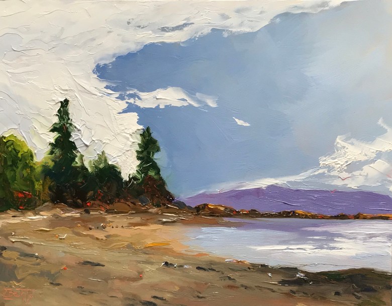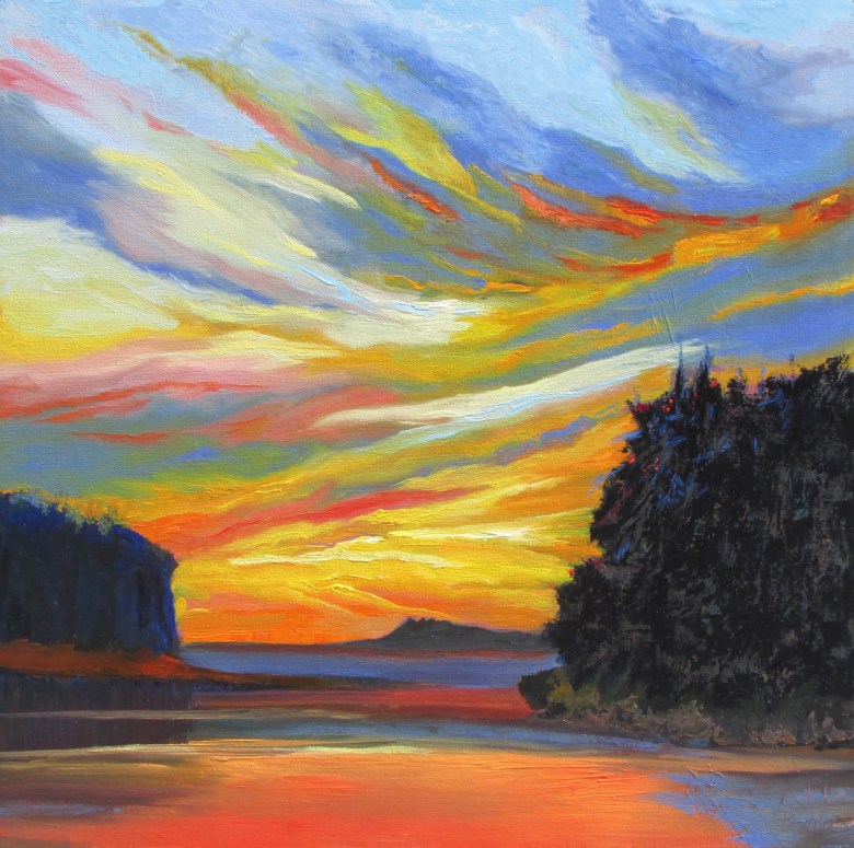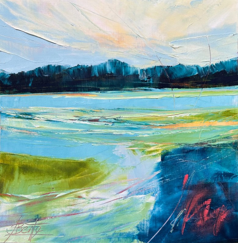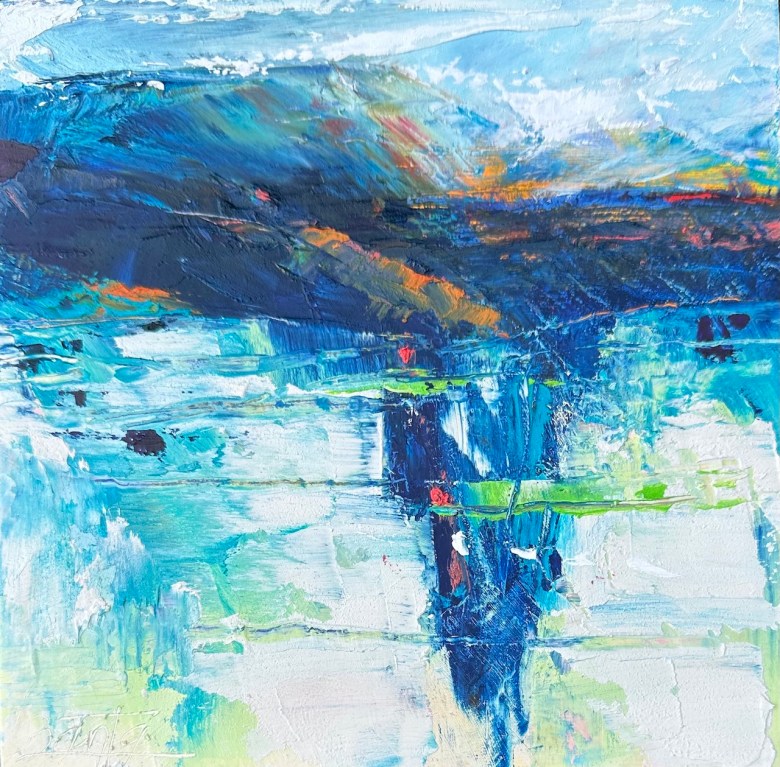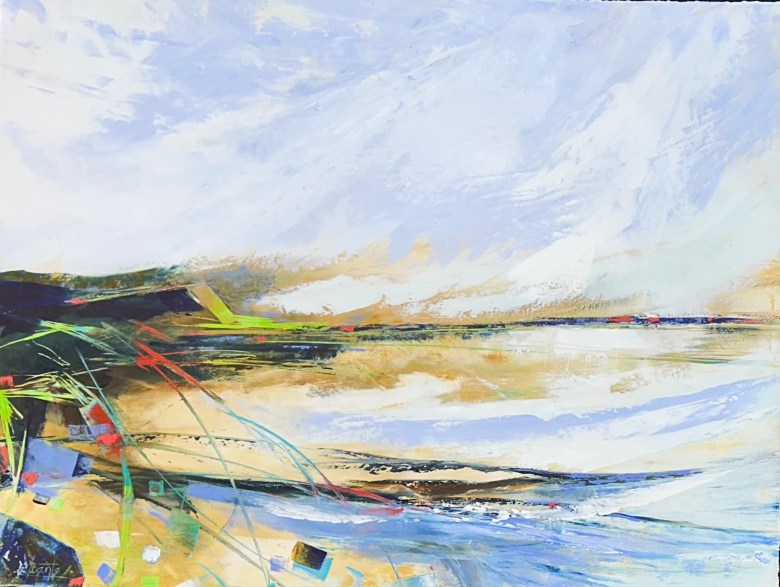 Dappled walkways, windswept beaches, moving skies and jagged rocks and inlets. These natural images that I find in nature are what I try to convey in my intuitive landscapes. I love using bold colour and strong brushstrokes to give the impression of how I feel about my surroundings.