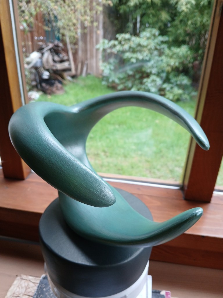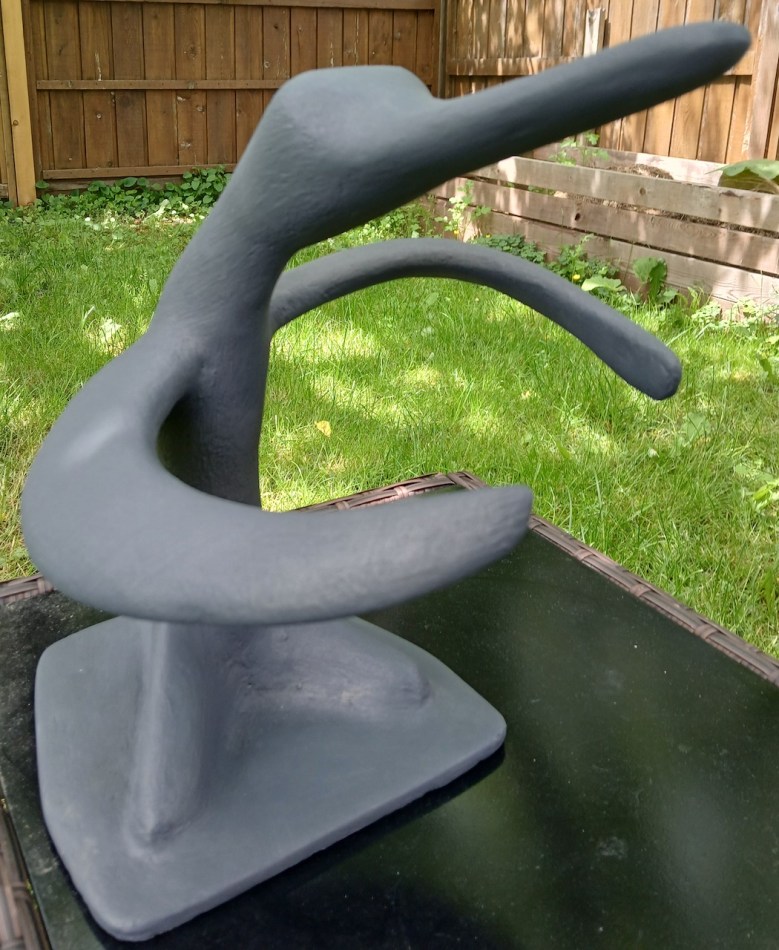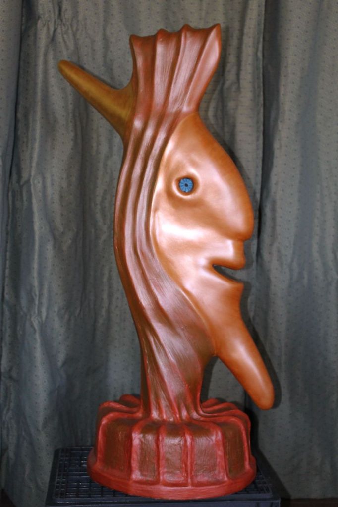 While his sculptures are made with paper mache one would never know it looking at their finely burnished finish. And thanks to the abstract (fluid) nature of his sculptures they suggest but are never quite birds, fish, plants or people. And they are never just sitting still either, each sculpture is doing something – reaching, leaping, dancing, posturing – anything but just sitting there.