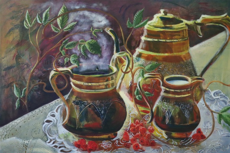 I paint in my home studio and receive regular very useful critiques from my husband. He is my perfect audience.